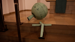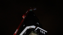 Außergewöhnlicher Feuerwehreinsatz - 45 Kilogramm schwere Metallkugel drohte zu fallen - Erst Freitag fiel das Kreuz ab - Rund 8 Stunden Einsatz - Spezialfirma im Einsatz