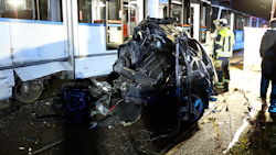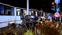 Pkw bei Kollision mit Straßenbahn massiv deformiert - Fahrer lebensgefährlich verletzt - 47 Fahrgäste wurden betreut - Wiederbelebungsmaßnahmen bei Fahrer - VU-Team im Einsatz