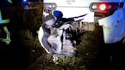 ANC-NEWS Bochum - Gegen 22:35 Uhr am späten Montagabend ereignete sich auf der Universitätsstraße, in Höhe der Auffahrt zur A 448, ein schwerer Verkehrsunfall. Eine Straßenbahn kollidierte mit einem Pkw, der daraufhin zwischen der Bahn und einem Mast der Oberleitung eingeklemmt wurde. Das Fahrzeug wurde dabei massiv deformiert, der Aufprall war so heftig, dass sich ein Fahrzeugsitz auf der Kupplung der Straßenbahn befand. Da zunächst von mehreren Verletzten und eingeklemmten Personen ausgegangen werden musste, rückte ein Großaufgebot an Einsatzkräften aus. Noch vor dem Eintreffen der Feuerwehr gelang es Ersthelfern, den Fahrer aus dem stark beschädigten Fahrzeug zu befreien und Wiederbelebungsmaßnahmen einzuleiten. Zwei Notärzte sowie die Besatzungen von drei Rettungswagen übernahmen die medizinische Versorgung des lebensgefährlich verletzten Pkw-Fahrers. Nach der Erstversorgung wurde er in eine Spezialklinik transportiert, es besteht Lebensgefahr. Die 47 Fahrgäste der Straßenbahn sowie der Bahnfahrer wurden vor Ort durch den Rettungsdienst gesichtet und betreut. Bis auf einen leicht verletzten Fahrgast blieben alle weiteren Insassen, darunter auch mehrere Kleinkinder, unverletzt. Insgesamt waren rund 35 Einsatzkräfte der Berufsfeuerwehr Bochum, des Rettungsdienstes sowie der Freiwilligen Feuerwehr aus den Löscheinheiten Bochum-Mitte und Querenburg im Einsatz. Die Polizei hat die Ermittlungen zur Unfallursache aufgenommen. Auch ein Verkehrsunfallaufnahmeteam (VU-Team) war im Einsatz.