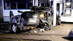Horrorcrash in Bochum: Pkw zwischen Straßenbahn und Mast eingeklemmt