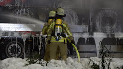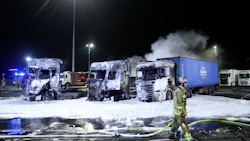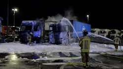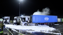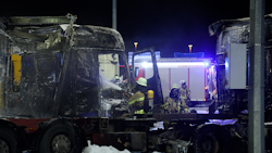 ANC-NEWS Duisburg - Im Hafengebiet von Duisburg-Meiderich ist es am frühen Abend (26.12.) zu einem größeren LKW-Brand gekommen. Kurz vor 18 Uhr meldeten mehrere Anrufer der Leitstelle einen brennenden Lastwagen im Bereich der Sympherstraße/Ecke Schlickstraße. Als die ersten Einsatzkräfte vor Ort eintrafen, standen bereits drei LKW in voller Ausdehnung in Flammen. Die Feuerwehr leitete umgehend umfangreiche Löschmaßnahmen ein. Zur Brandbekämpfung wurden vier Trupps unter Atemschutz eingesetzt. Zudem bauten die Einsatzkräfte eine großflächige Wasserversorgung über mehrere Hydranten auf, um ausreichend Löschwasser bereitzustellen. Für die Dauer des Einsatzes musste eine Strecke der Hafeneisenbahn gesperrt werden. Ein LKW-Fahrer erlitt bei dem Brand Verbrennungen an den Händen und wurde zur weiteren Behandlung in ein Krankenhaus gebracht. Insgesamt waren rund 70 Einsatzkräfte der Berufs- und Freiwilligen Feuerwehr im Einsatz. Zur Brandursache und zur Höhe des entstandenen Sachschadens liegen derzeit noch keine Informationen vor.
