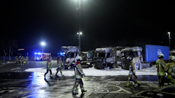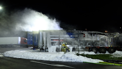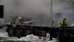 Großaufgebot der Feuerwehr im Einsatz - LKW-Fahrer verletzt - großflächige Wasserversorgung über mehrere Hydranten - Polizei ermittelt