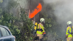 Flammenmeer in Hinterhof - Werkstatt durch Rauch und Hitze beschädigt - Asbestverdacht erschwert Nachlöscharbeiten - Anwohner vorsorglich evakuiert - Umweltamt untersucht Rußbelastung an umliegenden Fahrzeugen