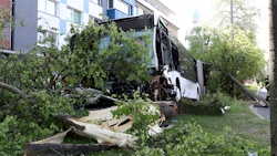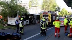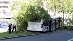 ANC-NEWS Gelsenkirchen - Aus bisher unbekannter Ursache verlor ein Busfahrer am Dienstagmorgen (28.04.) gegen 08:45 Uhr auf der De-La-Chevallerie-Straße in Gelsenkirchen die Kontrolle über seinen Gelenkbus, kam nach links von der Fahrbahn ab, streifte einen Transporter, kam auf den Mittelgrünstreifen und prallte gegen zwei Bäume. Das Fahrzeug kam auf dem gefällten zweiten Baum zum Stehen. Der Fahrer musste mit schweren Verletzungen durch die Feuerwehr mit Hilfe technischer Geräte befreit werden; er kam nach einer notärztlichen Erstversorgung in ein Krankenhaus. Da sich im Bus mehrere Fahrgäste befanden, hat die Feuerwehr vorsorglich einen MANV (Massenanfall von Verletzten) ausgelöst, um genügend Rettungsmittel an der Einsatzstelle zur Verfügung zu haben. Mehrere Fahrgäste wurden vermutlich nur leicht verletzt; über die Anzahl und Schwere der Verletzungen liegen derzeit noch keine genauen Angaben vor. Ein spezialisiertes Verkehrsunfallaufnahme-Team der Polizei Recklinghausen wurde angefordert, um den Unfall aufzunehmen. Für die Zeit der Unfallaufnahme und der Bergungsarbeiten wurde die De-La-Chevallerie-Straße gesperrt.