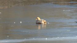 ANC-NEWS Essen- Am Donnerstagmittag (22.02.) musste die Feuerwehr Essen zu einem Tierrettungseinsatz an der Grimbergstraße in Kray ausrücken. Eine Kindergärtnerin war mit ihrer Gruppe an dem dortigen Teich vorbeigekommen, als ihr und den Kindern auffiel, dass ein Vogel auf der Eisfläche wild schnatterte und mit den Flügeln schlug. Das Tier war offensichtlich nicht in der Lage, sich von der Stelle zu bewegen. Die Kindergärtnerin hielt das Tier zunächst für eine exotische Gans. Ein Feuerwehrmann ging mit einem Überlebensanzug (an einer Leine gesichert) ins eiskalte Wasser und näherte sich vorsichtig dem hilflosen Vogel. Nachdem das Tier am Ufer war, stellte sich bei genauer Betrachtung heraus, dass es sich um eine Sachsenente handelte. Mittlerweile befindet sich der Vogel zwecks Untersuchung in der Obhut eines Tierarztes. Nach offiziellen Informationen kann die Ente voraussichtlich am Nachmittag wieder in die Freiheit entlassen werden.