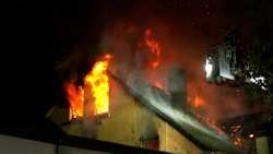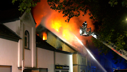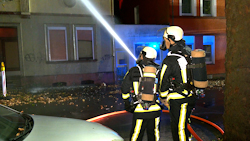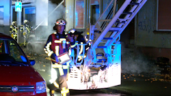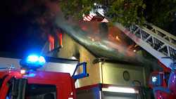 ANC-NEWS Bochum - In der Nacht zum Dienstag (09.09.) kam es zu einem Dachstuhlbrand in einem leerstehenden Wohnhaus auf der Weststraße im Stadtteil Leithe. Gegen 01:05 Uhr meldeten mehrere Anrufer eine starke Rauchentwicklung. Beim Eintreffen der Einsatzkräfte der Feuerwache Wattenscheid stand der Dachstuhl eines zweigeschossigen Gebäudes bereits in Vollbrand. Da es sich um ein unbewohntes Objekt handelte, konnten sich die Einsatzmaßnahmen auf die Brandbekämpfung konzentrieren. Um eine Ausbreitung des Feuers auf angrenzende Gebäude zu verhindern, wurden zunächst zwei Strahlrohre im Außenangriff eingesetzt. Im weiteren Verlauf kamen zwei Drehleitern zum Einsatz, über die ebenfalls Strahlrohre zur Brandbekämpfung geführt wurden. Nach rund 45 Minuten konnte das Feuer unter Kontrolle gebracht werden. Personen wurden glücklicherweise nicht verletzt. Für die Nachlöscharbeiten mussten Teile der Dachkonstruktion geöffnet und Dachziegel entfernt werden. Ein Betreten des Dachbodens war aufgrund der massiven Schäden nicht möglich. Die Nachlöscharbeiten dauern derzeit noch an und werden voraussichtlich bis in die frühen Morgenstunden andauern. Insgesamt waren rund 60 Einsatzkräfte der Berufsfeuerwehr, der Freiwilligen Feuerwehr sowie des Rettungsdienstes vor Ort im Einsatz. Die Brandursache ist derzeit noch unklar. Die Polizei hat die Ermittlungen aufgenommen. Quelle: Feuerwehr Bochum