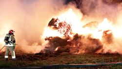 Vollalarm bei Strohballenbrand in Monheim am Rhein