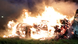 ANC-NEWS Monheim am Rhein - Die Feuerwehr Monheim am Rhein wurde am späten Montagabend (15.09.) zu einer Feuermeldung auf einem Feld zwischen der Bleer Straße und dem Rheindeich alarmiert. Bei Eintreffen der ersten Einsatzkräfte stellte sich heraus, dass Strohballen auf einem Anhänger in voller Ausdehnung brannten. Aufgrund der vorgefundenen Lage wurde die Alarmstufe auf „Vollalarm“ erhöht und weitere Kräfte nachalarmiert. Unverzüglich wurde der Löschangriff eingeleitet. Die Wasserversorgung musste über eine lange Wegstrecke aufgebaut werden. Im weiteren Einsatzverlauf wurden die Rundballen mittels Teleskoplader vom Anhänger geholt und zum Ablöschen auf dem Feld verteilt. Aufgrund der starken Rauchentwicklung und der damit verbundenen Geruchsbelästigung wurde die Warn-App „NINA“ ausgelöst. Die Polizei hat die Ermittlungen zur Brandursache aufgenommen.