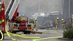 ANC-NEWS Castrop-Rauxel (Kreis Recklinghausen) - Am Freitagmorgen (31.10.) kam es gegen 08:15 Uhr in einem Gewerbebetrieb am Westring in einer Lkw-Werkstatt in Castrop-Rauxel zu einer Explosion. Aus bisher ungeklärter Ursache kam es an einem Flüssiggas-Transporter zur Explosion. Eine dunkle Rauchsäule war kilometerweit zu sehen. Zwei Personen wurden lebensgefährlich, zwei weitere leicht verletzt. Rettungshubschrauber transportierten die lebensgefährlich verletzten Personen. Die Feuerwehr war mit einem Großaufgebot an Kräften im Einsatz. Die Warn-Apps NINA wurde ausgelöst; Anwohner wurden aufgefordert, Fenster und Türen geschlossen zu halten. Der Feuerwehreinsatz wird voraussichtlich noch bis zum Nachmittag andauern.