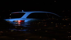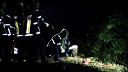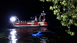 ANC-NEWS Essen - In der vergangenen Nacht (04.10.) wurde die Leitstelle der Feuerwehr Essen um 1:55 Uhr von der Polizei Essen über einen Pkw im Baldeneysee informiert. Aus bisher unbekannter Ursache war im Bereich Hardenbergufer in Essen-Fischlaken ein Pkw in den Baldeneysee gerollt. Die beiden Insassen konnten sich selbstständig vor dem Eintreffen der Rettungskräfte ans Ufer retten und blieben unverletzt - waren jedoch komplett durchnässt. Beim Eintreffen der Einsatzleitung der Feuerwehr Essen befand sich das Fahrzeug rund 50 Meter vom Ufer entfernt und ragte nur noch teilweise aus dem Wasser. Einsatzkräfte der Feuer- und Rettungswache Kupferdreh besetzten umgehend das Mehrzweckboot "Franz" und fuhren damit zur Einsatzstelle. Zusätzlich ging die Taucherstaffel der Essener Feuerwehr am See in Bereitstellung. Von der Feuerwache Mitte eilte der schwere Hilfeleistungszug herbei, der über die technischen Mittel zur Bergung des Fahrzeuges verfügt. Der ebenfalls alarmierte Rettungsdienst versorgte die beiden Personen, die glücklicherweise unverletzt geblieben waren. Ein Transport ins Krankenhaus lehnten beide ab. Im Einsatzverlauf wurde der Pkw vom Mehrzweckboot aus angeschlagen und anschließend mit der Seilwinde des Rüstwagens an Land gezogen. Nach rund zwei Stunden war das stark beschädigte Fahrzeug geborgen. Da anfangs nicht auszuschließen war, dass Betriebsmittel aus dem Fahrzeug auslaufen wurde das Umweltamt der Stadt Essen hinzugezogen. Wie es zu dem Unfall kommen konnte, ermittelt jetzt die Polizei Essen. Die Feuerwehr Essen war mit 20 Einsatzkräften rund zweieinhalb Stunden in Einsatz. Quelle: Feuerwehr