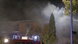 ANC-NEWS Schwalmtal (Kreis Viersen) – Ein Großaufgebot von Feuerwehr und Polizei ist am späten Mittwochabend (22.10.) zu einem Einsatz in Schwalmtal ausgerückt. Gegen 21:30 Uhr wurde eine mögliche Explosion in einem Wohnhaus an der Kasender Straße gemeldet. Einsatzkräfte der gegenüberliegenden Feuerwache waren innerhalb kürzester Zeit vor Ort. Bereits beim Eintreffen stellten sie starke Rauchentwicklung und Flammenbildung im Inneren des Gebäudes fest. Auf der Straße lagen zahlreiche Glassplitter zerstörter Fenster. Da die Sachlage zunächst unklar war und der Verdacht bestand, dass der Hausbewohner die Explosion selbst ausgelöst haben könnte, zog sich die Feuerwehr zunächst aus Eigenschutz zurück. In enger Absprache mit der Polizei wurde die Lage von außen eingeschätzt. Zur besseren Übersicht setzte die Feuerwehr auch eine Drohne zur Erkundung des Brandortes ein. Anfangs konnte die Feuerwehr deshalb nur einen Außenangriff über ein Strahlrohr durchführen. Die Polizei sperrte die umliegenden Zufahrtsstraßen weiträumig ab. Der Hausbewohner, der polizeibekannt sein soll, wurde zunächst im Gebäude vermutet. Diese Annahme bestätigte sich jedoch nicht, der Mann konnte an einem anderen Ort von der Polizei aufgegriffen werden. Immer wieder flammten im Inneren des Hauses Feuerherde auf, sodass die Feuerwehr ein handgeführtes Strahlrohr einsetzte, um die Flammen unter Kontrolle zu bringen. Das Feuer breitete sich schließlich bis in den Dachbereich aus. Mithilfe einer Drehleiter und insgesamt vier Strahlrohren gelang es den Einsatzkräften, die Flammen zu löschen. Im weiteren Verlauf drang die Feuerwehr in das Gebäude vor, um letzte Glutnester abzulöschen. Die Kriminalpolizei hat die Ermittlungen zur Brand- und Explosionsursache aufgenommen. Der Einsatz dauerte bis in die Nacht. Zur genauen Ursache machte die Polizei zunächst keine Angaben. Die Ermittlungen dauern an.