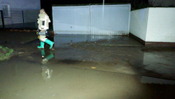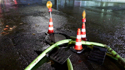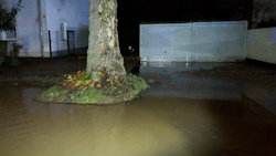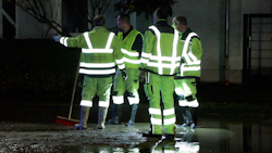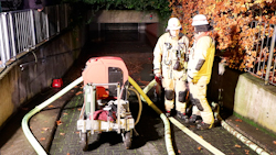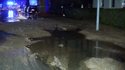 ANC-NEWS Düsseldorf - Am späten Samstagabend kam aus noch ungeklärter Ursache zu einem Rohrbruch in einer Transportwasserleitung im Stadtteil Düsseldorf-Benrath. Bereits in der Nacht zum Samstag (15.11.) war eine große Wasserserrorhrleitung in Düsseldorf-Gerresheim gebrochen (wir berichteten). Bewohner der Kleinstraße informierten die Feuerwehr gegen 23:46 Uhr über den Wasseraustritt. Mehrere Einheiten der Feuerwehr rückten an; vor Ort war eine Unterbrechung der Leitung unterhalb der Straße sichtbar, Wasser floss in Kellergeschosse und eine Tiefgarage. Die Feuerwehr pumpte mit Hochleistungspumpen; es gab keine Verletzten. Zahlreiche Fahrzeuge in der Tiefgarage standen bis zu 1,5 Metern unter Wasser. Es entstand ein hoher Sachschaden. Durch Unterspülung der Straße war die Standsicherheit eines Baums gefährdet; dieser musste von der Feuerwehr zurückgeschnitten werden. Gemeinsam mit den Stadtwerken wurden Gebäude zeitweise stromlos geschaltet; Trinkwasser blieb unbeeinträchtigt. Die Maßnahmen dauern am Sonntagmorgen an. Die Kleinstraße bleibt gesperrt. Rund 35 Kräfte der Feuerwehr waren im Einsatz. Die Netzgesellschaft Düsseldorf und ein Tiefbauunternehmen arbeiten an der Instandsetzung. Zur Schadenshöhe und Ursache können noch keine Angaben gemacht werden.