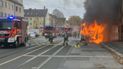 Großeinsatz der Feuerwehr: Linienbus steht in Flammen