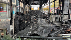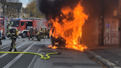 ANC-NEWS Essen - Am Montagmittag (03.11.) wurde die Feuerwehr Essen gegen 14:10 Uhr zu einem Großeinsatz auf die Frintroper Straße alarmiert. Mehrere Notrufe meldeten einen brennenden Linienbus der STOAG, weshalb die Leitstelle umgehend die Alarmstufe erhöhte. Bereits auf der Anfahrt konnten die Einsatzkräfte die weithin sichtbare Rauchsäule erkennen. Beim Eintreffen der ersten Feuerwehrkräfte stand der Bus bereits in Vollbrand, meterhohe Flammen schlugen aus dem Fahrzeug. Glücklicherweise konnten sich alle Personen rechtzeitig ins Freie retten. Der Fahrer wurde mit einer Rauchgasvergiftung in ein Krankenhaus transportiert. Der Bus befand sich an einer Haltestelle in unmittelbarer Nähe eines Mehrfamilienhauses. Durch die enorme Hitzeeinwirkung schmolzen dort mehrere Rollläden. Die Feuerwehr setzte mehrere Strahlrohre ein, um den Brand unter Kontrolle zu bringen und ein Übergreifen der Flammen auf das Wohnhaus zu verhindern. Insgesamt war die Feuerwehr Essen mit zwei Löschzügen sowie mehreren Sonderfahrzeugen im Einsatz. Während der Löscharbeiten musste die Frintroper Straße in beiden Richtungen voll gesperrt werden. Die Brandursache ist derzeit noch unklar. Die Polizei hat die Ermittlungen aufgenommen.
