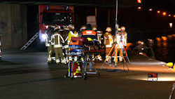 ANC-NEWS Oberhausen - Am Donnerstag, den 27.11.2025, erreichte die Leitstelle der Feuerwehr Oberhausen um 17:27 Uhr ein Notruf. Ein Anrufer meldete, dass ein Pkw im Rhein-Herne-Kanal (im Bereich unterhalb der Autobahnbrücke der A3) trieb und anschließend unterging. Da nicht ausgeschlossen werden konnte, dass sich noch eine Person im Fahrzeug befand, wurden umgehend umfangreiche Rettungskräfte alarmiert. Die Feuerwehr Oberhausen war mit den Wasserrettungseinheiten sowie dem Rettungsdienst vor Ort. Da sich die Einsatzstelle in unmittelbarer Nähe zur Duisburger Stadtgrenze befand, wurde zusätzlich die Feuerwehr Duisburg alarmiert. Zur Suche des Fahrzeuges kamen sowohl ein Sonargerät als auch eine Unterwasser-Drohne der Oberhausener Feuerwehr zum Einsatz. Ein Sonargerät sendet Schallwellen ins Wasser und wertet das Echo aus, um Gegenstände unter der Wasseroberfläche zu erkennen. Nachdem der Pkw auf diese Weise geortet werden konnte, gingen Taucher der Feuerwehr Duisburg mit einem speziellen Hebegerät ins Wasser, um das Fahrzeug zu sichern und abzuheben. Anschließend wurde der Pkw mit Kran des Duisburger Löschbootes aus dem Wasser gehoben. In dem Fahrzeug befand sich glücklicherweise keine Person. Die Polizei hat die weiteren Ermittlungen übernommen. Quelle: Feuerwehr Oberhausen