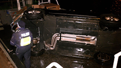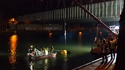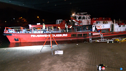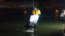 Feuerwehr ortet Fahrzeug mit Sonargerät - Auto mit Kran des Duisburger Löschbootes geborgen - Keine Personen im Fahrzeug