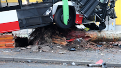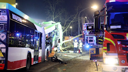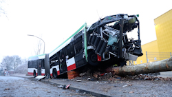 ANC-NEWS Gelsenkirchen - Gegen 07:00 Uhr am Mittwochmorgen (31.12.) wurden Polizei und Feuerwehr zu einem schweren Verkehrsunfall auf die Ostpreußenstraße in Gelsenkirchen alarmiert. Vor Ort stellte sich heraus, dass ein Linienbus, vermutlich bei voller Fahrt, gegen einen Baum gefahren war. Der Gelenkbus wurde im vorderen Bereich stark beschädigt und kam auf dem Baum in etwa einem Meter Höhe zum Stillstand. Der Fahrer wurde in dem stark deformierten Bus eingeklemmt. Zum Unfallzeitpunkt befanden sich zwei Fahrgäste im Bus; beide wurden nach einer Untersuchung mit leicht- bis mittelschweren Verletzungen in ein Krankenhaus transportiert. Der Busfahrer war über 60 Minuten eingeklemmt und musste mit schwerem Gerät befreit werden. Zuvor wurde der Bus stabilisiert, damit er nicht vom Baum rutscht. Nach einer Erstuntersuchung durch den Notarzt kam er mit schweren Verletzungen in ein Krankenhaus. Eine Lebensgefahr kann derzeit nicht ausgeschlossen werden. Wie es zu diesem Unfall kam, ist nun Gegenstand der polizeilichen Ermittlungen. Die Ostpreußenstraße wurde für die Dauer der Rettungs- und Bergungsarbeiten gesperrt