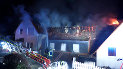 ANC-NEWS Hagen - Die Feuerwehr Hagen wurde in der Silvesternacht gegen 00:15 Uhr zu einem Dachstuhlbrand an mehreren zusammenhängenden Gebäuden in der Straße „Zur Höhe“ alarmiert. Wie die Polizei berichtet, brannte zunächst ein Baum neben dem Wohngebäude; im weiteren Verlauf griffen die Flammen auf die Wohngebäude über. Zahlreiche Trupps waren zeitgleich unter Atemschutz mit insgesamt neun Strahlrohren im Einsatz. Um die Wasserversorgung sicherzustellen, wurde Löschwasser über lange Schlauchleitungen von der Selbecker Straße herangeführt. Die Gebäude brannten vollständig aus. Glücklicherweise wurde niemand verletzt. Ob der Brand durch einen Feuerwerkskörper verursacht wurde, ist derzeit Gegenstand der kriminalpolizeilichen Ermittlungen.