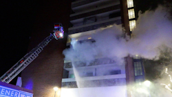 ANC-NEWS Düsseldorf/ Erkrath (Kreis Mettmann) - In der Silvesternacht musste die Feuerwehr Düsseldorf unter anderem zu einem Balkonbrand in einem Hochhaus am Heinrich-von-Brentano-Platz ausrücken. Beim Eintreffen der ersten Einsatzkräfte stellte sich heraus, dass es im 2. Obergeschoss zu einem Balkonbrand gekommen war. Durch den unverzüglich eingeleiteten Löschangriff konnte eine Ausbreitung des Feuers auf die Wohnung und die darüberliegenden Balkone verhindert werden. Mutmaßlich war der Brand durch Feuerwerkskörper ausgelöst worden. Die Feuerwehr wurde außerdem zu einem Kellerbrand in einem Mehrfamilienhaus an der Carl-Friedrich-Goerdeler-Straße alarmiert. Auch dort wurde bei Eintreffen umgehend ein Löschangriff eingeleitet. Mehrere Personen wurden im Einsatzverlauf durch den Rettungsdienst betreut. Nach Abschluss der Brandbekämpfung wurden umfangreiche Entrauchungsmaßnahmen durchgeführt. Nach offiziellen Informationen brannte es in einem Kellerverschlag. Die Polizei hat die Ermittlungen zur Brandursache aufgenommen. In Erkrath rückte die Feuerwehr zu einem Brand an einem Müllsammelplatz in der Sandheider Straße aus. Da es im vergangenen Jahr in Erkrath zu massiven Ausschreitungen gekommen war, wurden die Einsatzkräfte bei den Löscharbeiten von der Polizei begleitet. Auch dort wurde niemand verletzt; es entstand Sachschaden. Die Polizei hat die Brandermittlungen aufgenommen.