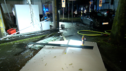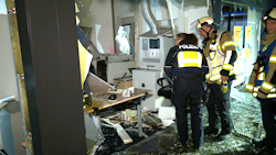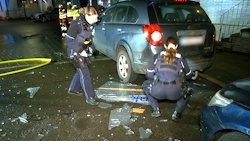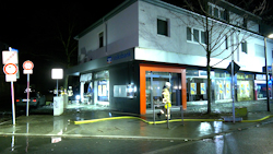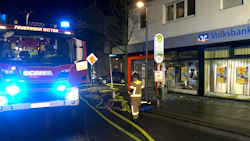 ANC-NEWS Witten (Ennepe-Ruhr-Kreis) - Die Feuerwehr Witten wurde in der Nacht zum Donnerstag (15.01.) gegen 02:50 Uhr zu zwei Explosionen auf der Annenstraße gerufen. Vor Ort stellten die Einsatzkräfte fest, dass an der Filiale der Volksbank eine Geldautomatensprengung stattgefunden hatte. Der Eingangsbereich der Bank wurde dabei völlig zerstört. Durch die Explosionen lagen Glassplitter auf der Straße; umherfliegende Teile und Scherben beschädigten mehrere vor der Bank geparkte Fahrzeuge. Ob die Täter Beute machen konnten, ist noch unklar. Zeugenaussagen zufolge flüchteten zwei Personen auf einem Roller. Zur Fahndung setzte die Polizei unter anderem einen Hubschrauber ein. Es entstand hoher Sachschaden.