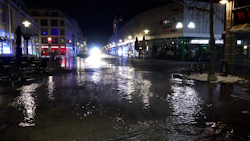 ANC-NEWS Langenfeld (Kreis Mettmann) - In der Nacht zum Mittwoch (07.01.) kam es in Langenfeld in der Fußgängerzone zwischen der Markthalle und dem Sass am Markt zu einem Wasserrohrbruch. Bei Eintreffen der Feuerwehr sprudelten große Mengen Wasser aus mehreren Stellen des Gehwegs. Die Stadtwerke stellten die Versorgung ab. Laut offiziellen Angaben ist der betroffene Bereich unterspült, deshalb wurde er aus Sicherheitsgründen großflächig abgesperrt. Aufgrund der niedrigen Temperaturen gefror das ausgetretene Wasser innerhalb kurzer Zeit und bildete eine rutschige Eisfläche. Die Schadensursache sowie das Ausmaß der Boden- und Leitungsbeschädigung werden derzeit noch untersucht.